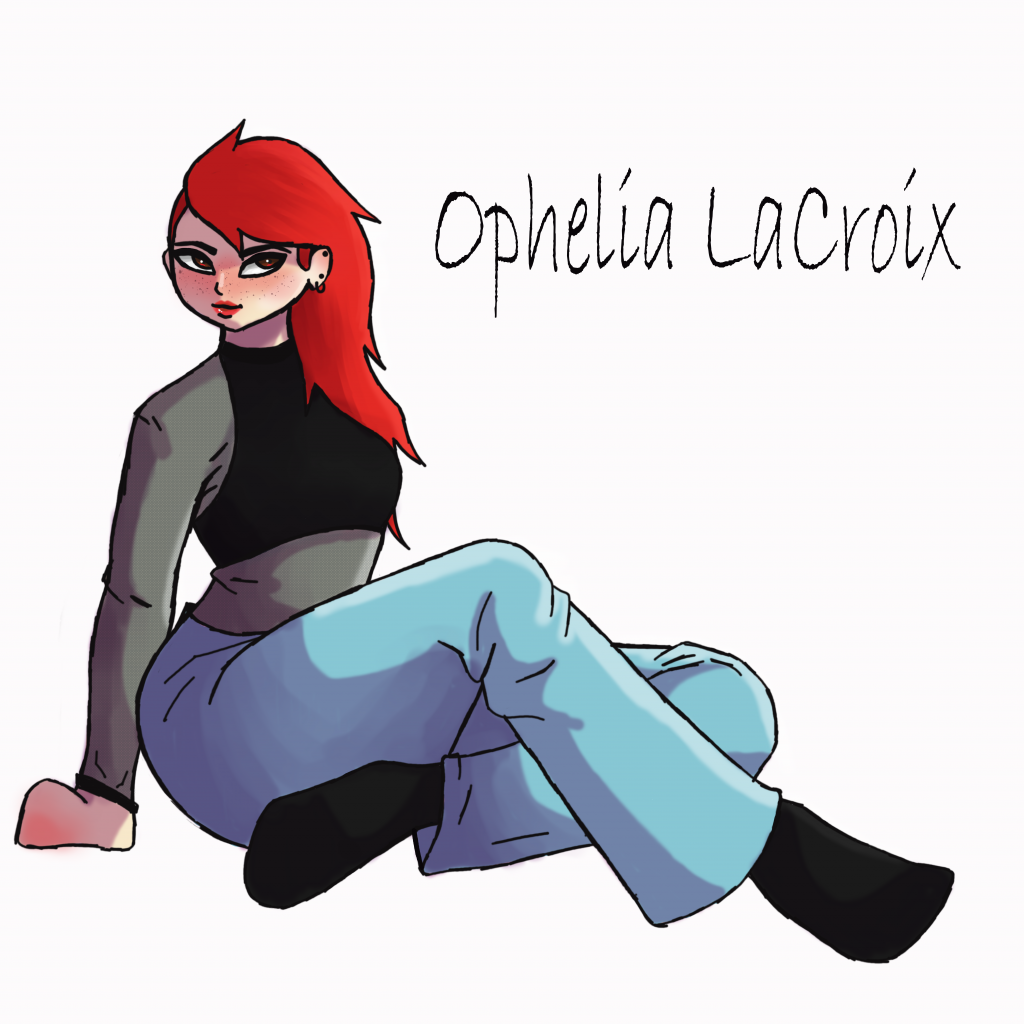Ophelia has always been desperate to differentiate herself from those around her, desperate to be noticed and loved. It makes sense, then, that she decorates herself with the ornaments and designs that make her deliciously fun to draw. Dyed and styled red hair (naturally a mousy shade of brown), tattoos she shouldn’t legally have been able to get, piercings in her ears and colorful makeup on her eyes. She is not built like a model, and she had struggled with her weight in the past, but she dresses with proud confidence, favoring bright colors and bare skin. She was not the first to receive a name, but she was the first of the five I felt I truly got to know, which is very in-character for her. I suppose I loved her best in the early days, and even now my mother identifies Ophelia as her favorite of my characters. It’s ironic – the character who, in person, would be the least likable, is on paper the most easily loved. And yes, she is named after the drink.